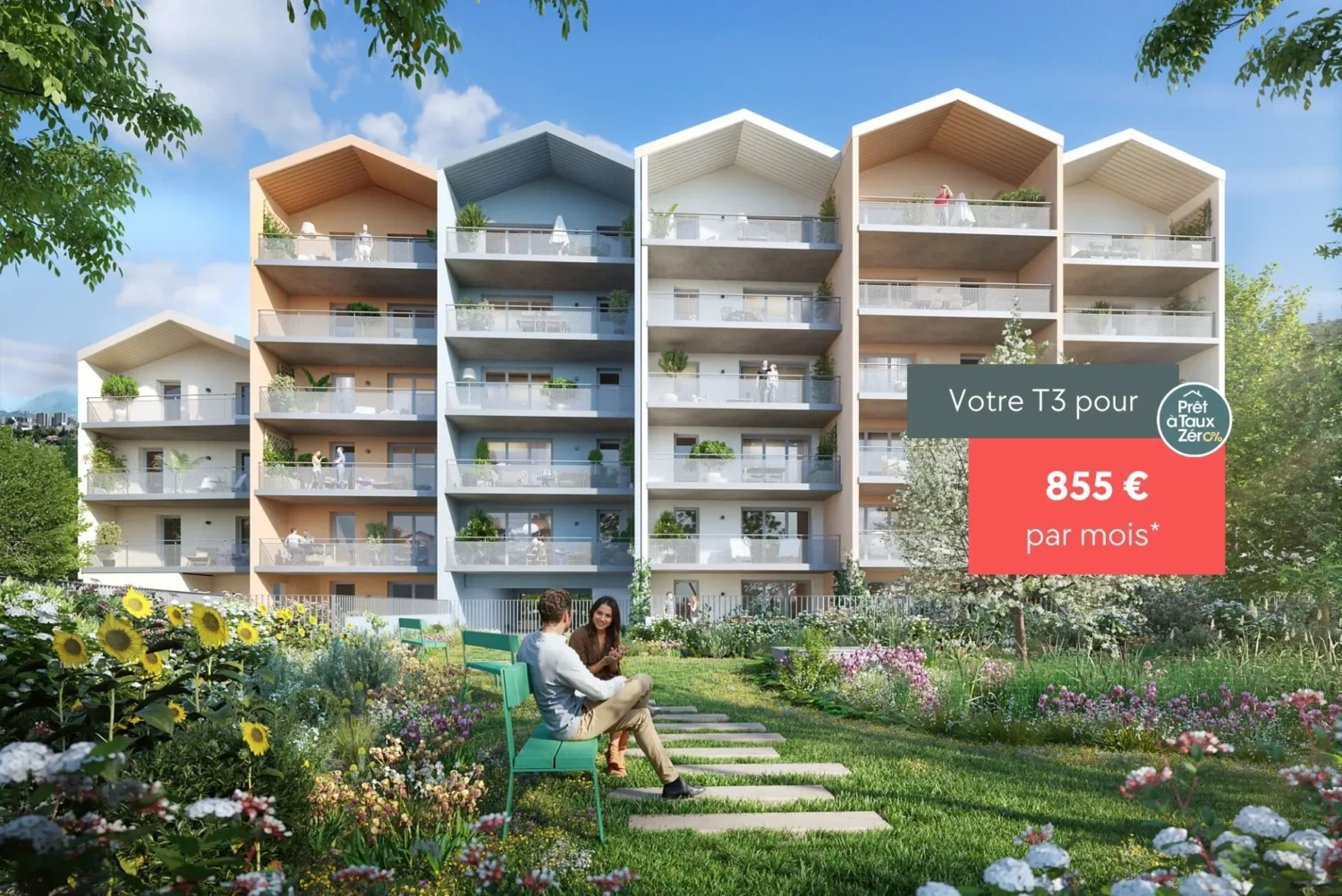 Les appartements, lumineux et bien agencés, privilégient les orientations traversantes et sont prolongés par de larges balcons ou terrasses offrant des vues dégagées sur les massifs du Vercors et de Belledonne. Certains logements en rez-de-chaussée bénéficient d’un accès privatif sur jardin. Grâce aux équipements domotiques et à une conception respectueuse de l’environnement (RE2020, chauffage urbain et panneaux photovoltaïques), le confort devient naturel et responsable.