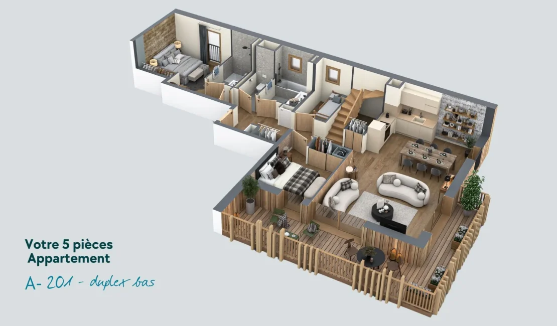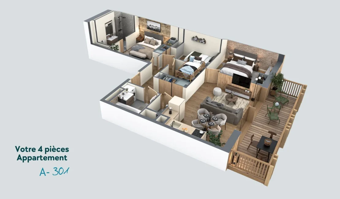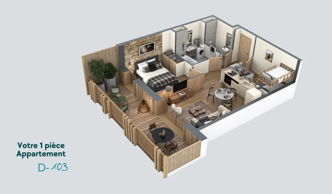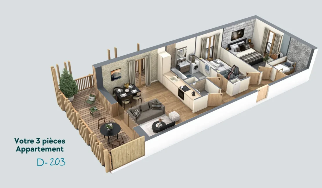 Composée de 52 logements, la résidence propose une large gamme d’appartements, du studio au 5 pièces. Que ce soit pour vivre à l’année, profiter de vacances en montagne ou investir, SINAYA conjugue confort, authenticité et emplacement de choix.