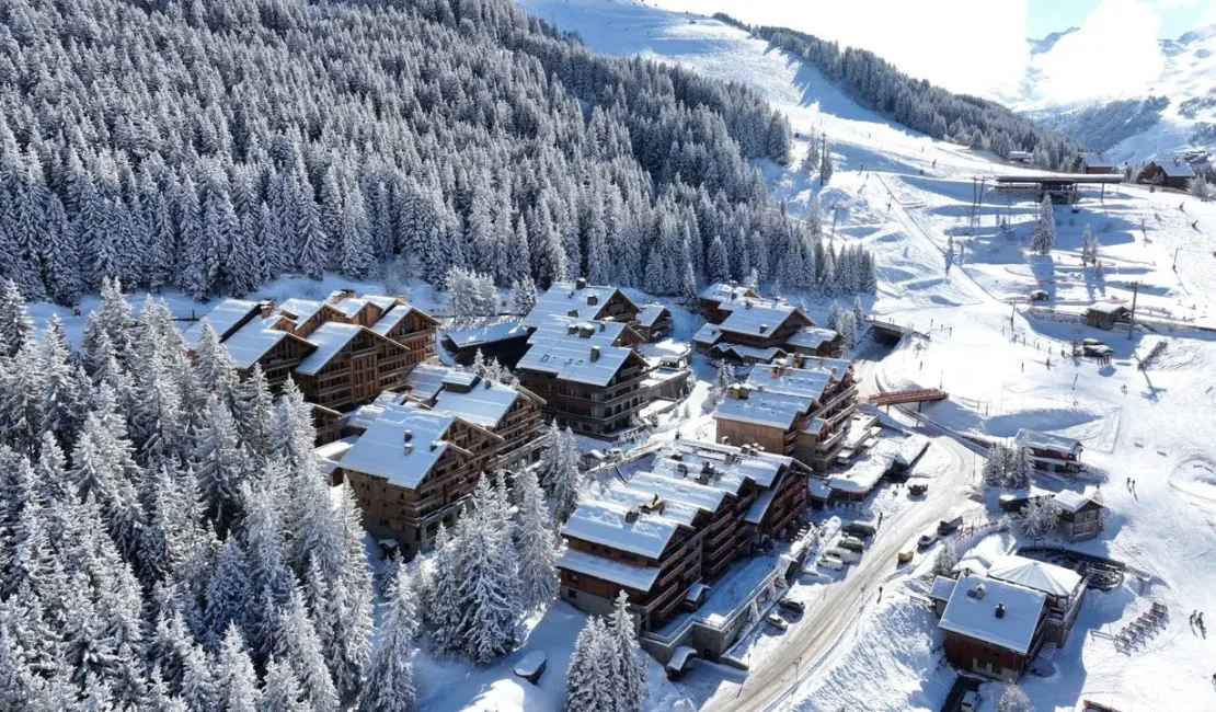 Parfaitement intégré au paysage et implanté au cœur du quartier du Rond Point des Pistes, à Méribel, Le Bois des Ours est constitué de 21 appartements spacieux du 3 au 7 pièces.